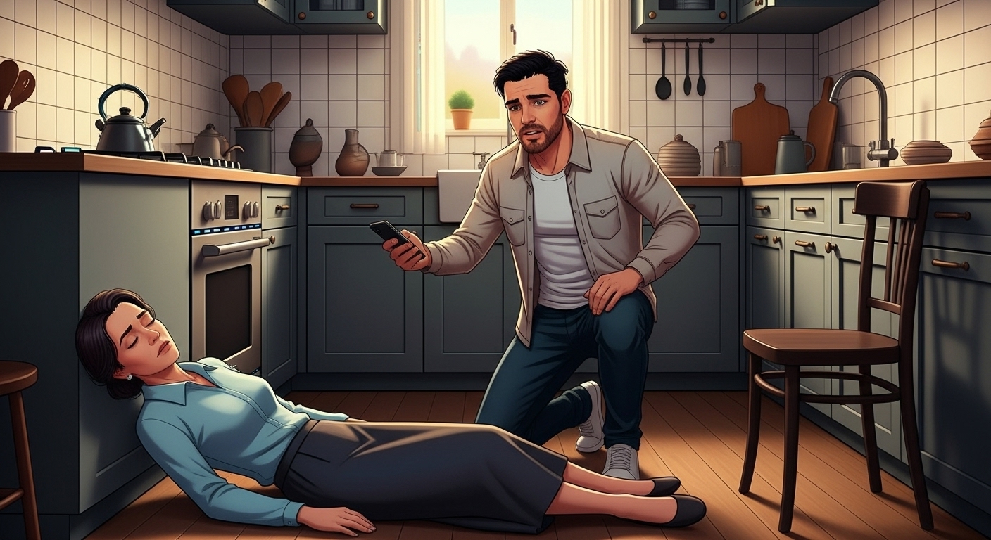 يقول الرجل: “ابقَ على الهاتف. سيارة الإسعاف قادمة”.